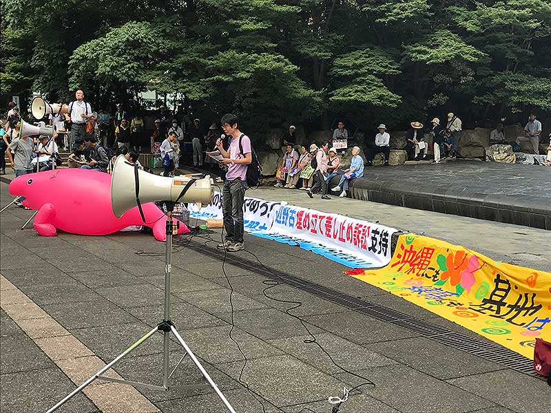 沖縄で4万5千人を結集して開催された「翁長知事を支え、辺野古に新基地を造らせない沖縄県民大会」に連帯して東京で取り組まれた集会です。デモでは辺野古リレーの皆さんの隊列に入れていただきました。
