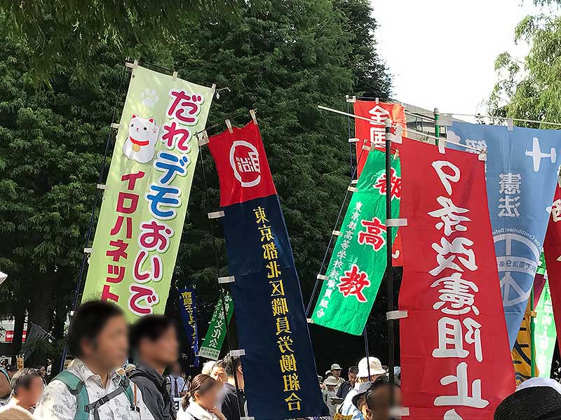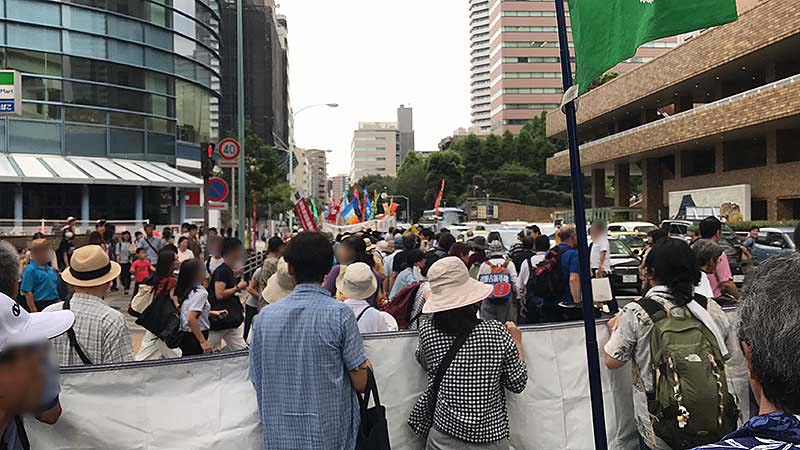 主催者のデモ申請では参加人数の見込みを400人と申請したそうですが、実際には嬉しい誤算で倍の800人が結集しました(それでもまだまだ少ないけど)。