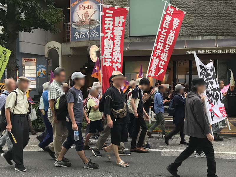 デモではNO-VOXなどなど宮下公園を守る皆さんとも合流。飛び入りの方を含めて30名くらいの隊列でデモしました。