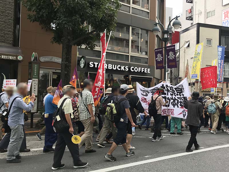 途中、DHCの沖縄ヘイトに対する抗議を渋谷直営店で、宮下公園では三井不動産への抗議などを隊列全員でおこないつつ、渋谷コースを元気にデモしてきました。デモ前の集会・コンサートの様子も末尾の三輪祐児さんの動画にてご覧下さい。